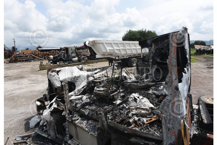 SAN JOSÉ DEL RINCÓN, ESTADO DE MÉXICO, 15AGOSTO2022.- Después de la protesta que se dio en el municipio de San José del Rincón por parte de pobladores, comerciantes y transportistas, en donde quemaron una patrulla, un aserradero, varios vehículos, un módulo de policía y una propiedad de la alcaldesa, ante el reclamo por la inseguridad que se vive en el municipio y el cobro de cuotas por parte de un grupo criminal, este lunes no se pudo observar seguridad municipal ni estatal en la zona, los habitantes viven con el temor desde hace 8 meses que comenzaron las extorsiones y se dicen cansados de que los grupos criminales sean protegidos por las autoridades municipales y la Policía Estatal no haga nada al respecto. FOTO: CRISANTA ESPINOSA AGUILAR /CUARTOSCURO.COM