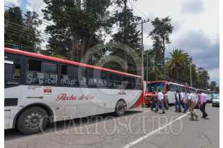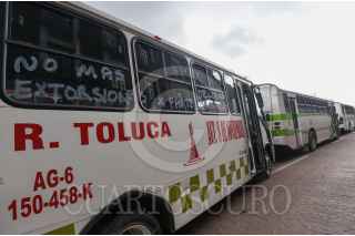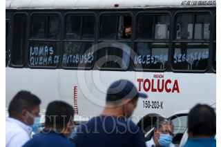 TOLUCA, ESTADO DE MÉXICO, 15AGOSTO2022.- Integrantes de 29 empresas Transportistas Del Valle de Toluca denunciaron que al no querer pagar extorsiones de 1000 pesos que les exige un grupo criminal han sido quemadas al menos 10 unidades, exigieron a las autoridades estatales paren esto ya que se ve afectada la movilidad en varios municipios del Valle de Toluca. FOTO: CRISANTA ESPINOSA AGUILAR /CUARTOSCURO.COM
