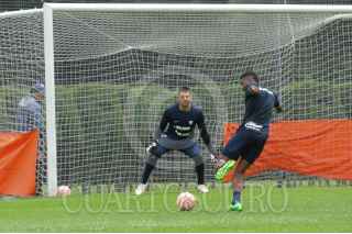 CIUDAD DE MÉXICO, 16AGOSTO2022.- Luego de la derrota frente al América, los Pumas regresaron a los entrenamientos en las instalaciones de La Cantera, los delanteros universitarios dedicaron una parte de las prácticas al disparo a puerta. FOTO: DANIEL AUGUSTO /CUARTOSCURO.COM