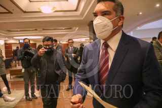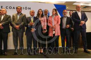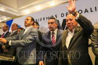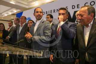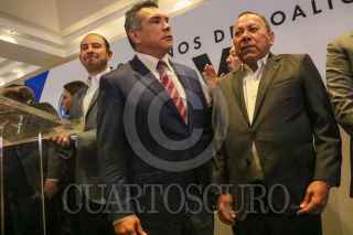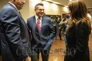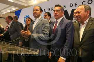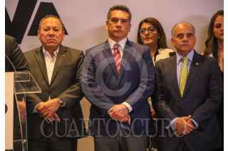 CIUDAD DE MÉXICO. 17AGOSTO2022.- Alejandro Moreno, Marko Cortés y Jesús Zambrano, dirigentes de los partidos políticos de la Alianza Va X México, con reunión previa ofrecieron conferencia de prensa en un hotel de Paseo de la Reforma. FOTO: VICTORIA VALTIERRA/CUARTOSCURO.COM