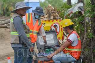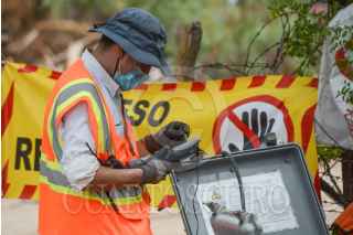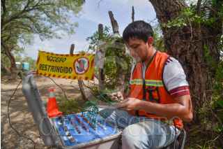 SABINAS, COAHUILA, 17AGOSTO2022.- Geólogos de las empresas Geoprospect y Teotl, continúan los trabajos de campo para llevar a cabo tomografía eléctrica que busca oquedades, y posibles zonas de aportación de agua hacia la mina de Pinabete, en donde continúan desaparecidos diez mineros. FOTO: MARIO JASSO/CUARTOSCURO.COM