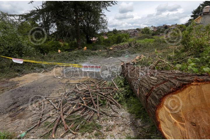 ZINACANTEPEC, ESTADO DE MÉXICO, 17AGOSTO2022.- La Procuraduría Federal de Protección al Ambiente PROFEPA suspendió la obra realizada por una empresa constructora en el proyecto del fraccionamiento Bosques del Nevado en donde más de 200 árboles fueron talados de manera ilegal para continuar con el desarrollo, esto en San Juan de las Huertas en el municipio de Zinacantepec, vecinos denunciaron en redes sociales el daño que se hace a las áreas verdes de la localidad que han sido invadidas por las viviendas. FOTO: CRISANTA ESPINOSA AGUILAR /CUARTOSCURO.COM