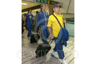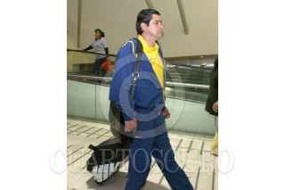 MÉXICO, D.F., 29ENERO2007.- Salvador Cabañas, delantero del América, arriba al aeropuerto de la ciudad de México proveniente de Monterrey en donde disputó un partido en contra de los Tigres. FOTO: FERNANDO GARCÍA/CUARTOSCURO.COM