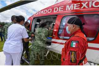 SANTA MARÍA RAYÓN, ESTADO DE MÉXICO, 19AGOSTO2022.- De manera coordinada la Secretaría de la Defensa Nacional SEDENA, el Hospital Militar de Zona de Santa María Rayón y de la Unidad de Rescate Aéreo del Estado se México “Relámpagos” llevaron a cabo el Curso “Panorama de Actualización en el Área de Salud”, enfocado a personal de enfermería, médicos, paramédicos, personal de salud en general en donde participaron alrededor de 100 personas; este viernes se llevó a cabo el curso MISEA “Evacuación Aeromédica” desde un entorno prehospitalarios, estabilización del paciente y su traslado a un centro hospitalario adecuado para su atención, enfocado a obtener los conocimientos necesarios para que el personal y los pacientes sea de una manera segura y la evacuación sea exitosa. FOTO: CRISANTA ESPINOSA AGUILAR /CUARTOSCURO.COM