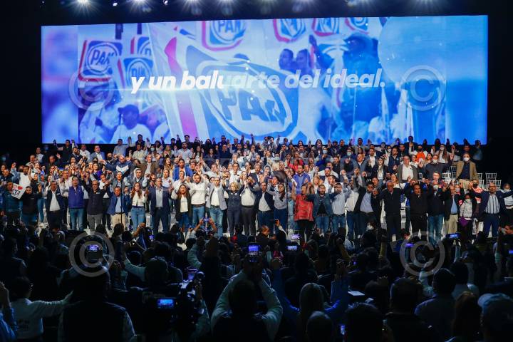 OLUCA, ESTADO DE MÉXICO, 21AGOSTO2022.- La militancia panista sostuvo un encuentro con Enrique Vargas del Villar, quien estuvo acompañado por Markos Cortés Presidente Nacional del PAN, los gobernadores Querétaro, Yucatán, Guanajuato, Mauricio Kuri González, Mauricio Vila y Diego Sinhué Rodríguez, así como la gobernadora electa de Aguascalientes María Teresa Jiménez, Santiago Creel Miranda, la Senadora Xóchitl Gálvez, presidentes municipales, diputados federales y locales, en donde convocó a los panistas a buscar la gubernatura del Estado de México, a trabajar de manera coordinada para ganar las elecciones del 2023 que se llevó a cabo en el Teatro Morelos.FOTO: CRISANTA ESPINOSA AGUILAR /CUARTOSCURO.COM