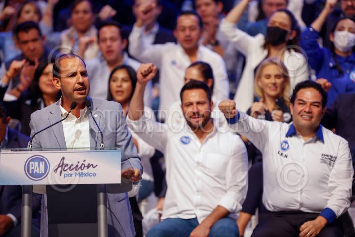 OLUCA, ESTADO DE MÉXICO, 21AGOSTO2022.- La militancia panista sostuvo un encuentro con Enrique Vargas del Villar, quien estuvo acompañado por Markos Cortés Presidente Nacional del PAN, los gobernadores Querétaro, Yucatán, Guanajuato, Mauricio Kuri González, Mauricio Vila y Diego Sinhué Rodríguez, así como la gobernadora electa de Aguascalientes María Teresa Jiménez, Santiago Creel Miranda, la Senadora Xóchitl Gálvez, presidentes municipales, diputados federales y locales, en donde convocó a los panistas a buscar la gubernatura del Estado de México, a trabajar de manera coordinada para ganar las elecciones del 2023 que se llevó a cabo en el Teatro Morelos.FOTO: CRISANTA ESPINOSA AGUILAR /CUARTOSCURO.COM
