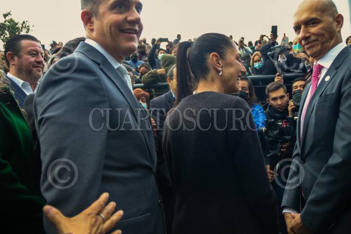 CIUDAD DE MÉXICO. 22AGOSTO2022.- La jefa del Gobierno de la Ciudad, Claudia Sheinbaum Pardo y la l alcalde de Cuajimalpa, Adrián Ruvalcaba entregaron patrullas a la demarcación con el fin de combatir la delincuencia en esta alcaldía. FOTO: VICTORIA VALTIERRA/CUARTOSCURO.COM