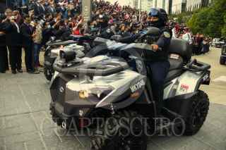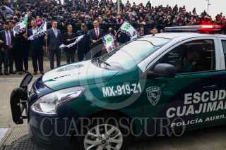 CIUDAD DE MÉXICO. 22AGOSTO2022.- La jefa del Gobierno de la Ciudad, Claudia Sheinbaum Pardo y la l alcalde de Cuajimalpa, Adrián Ruvalcaba entregaron patrullas a la demarcación con el fin de combatir la delincuencia en esta alcaldía. FOTO: VICTORIA VALTIERRA/CUARTOSCURO.COM