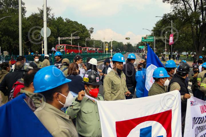 CIUDAD DE MÉXICO. 22AGOSTO2022.- Trabajadores de la cooperativa Cruz Azul, realizaron un bloqueo en ambos sentidos del paseo de la Reforma, a la altura de la estela de Luz, está mañana. FOTO: VICTORIA VALTIERRA/CUARTOSCURO.COM