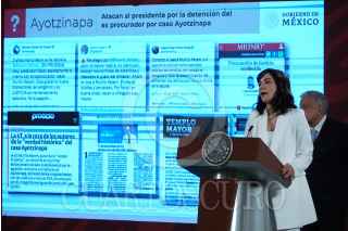 CIUDAD DE MÉXICO, 24AGOSTO2022.- Andrés Manuel López Obrador, presidente de México, y Ana Elizabeth García Vilchis, titular de la sección de Quién es quien en las noticias de la semana, encabezaron la conferencia matutina desde Palacio Nacional. Dentro del informe se presentó un contraste sobre las publicaciones respecto al nuevo informe de la Comisión de la Verdad (COVAJ-Ayotzinapa), así como la detención del ex procurador de la República, Jesús Murillo Karam. FOTO: GALO CAÑAS/CUARTOSCURO.COM