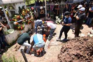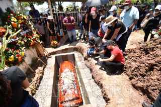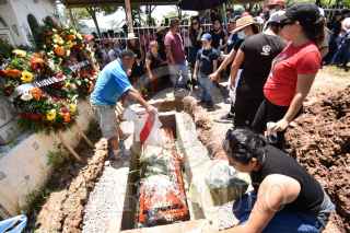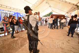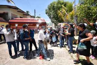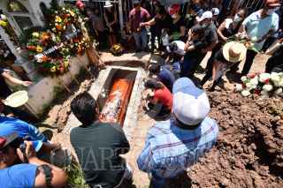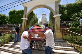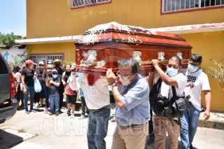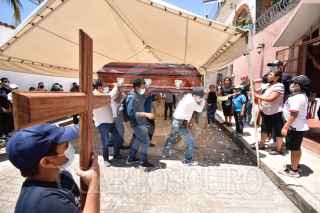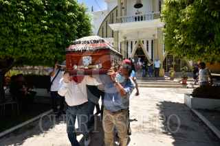 CHILPANCINGO, GUERRERO, 24AGOSTO2022.- Entre resguardo de cuerpos de seguridad ministerial y policial, el periodista Fredid Román Román fue sepultado en el panteón de la comunidad de Buenavista de la Salud; sus familiares exigieron justicia y señalaron que tienen miedo por su seguridad. Fredid fue velado en su domicilio desde la madrugada del lunes y este miércoles, después de una misa dentro de la casa, el cortejo fúnebre salió cerca de la una de la tarde para despedirlo de la casa de sus familiares y la iglesia del pueblo. Al salir de la iglesia, una de sus familiares (que pidió no ser identificada) declaró que temen por la seguridad de toda su familia. “Sí tememos por la seguridad de la familia porque las cosas no están bien”, expresó brevemente. “Lo único que pido es que se haga justicia por lo que le pasó a mi familia (…) pueden decir muchas cosas, pero sólo Dios y la gente que conoce tiene la verdad”, indicó. La presencia policíaca resguardó los alrededores de la casa de Fredid Román y camino al panteón en donde fue sepultado pasadas las 14:30 horas. FOTO: DASSAEV TÉLLEZ ADAME/CUARTOSCURO.COM