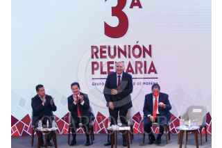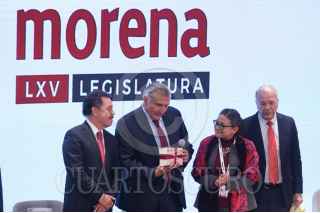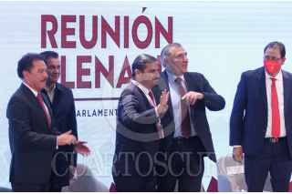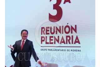 CIUDAD DE MÉXICO, 25AGOSTO2022.- Ignacio Mier Velazco, coordinador del grupo parlamentario Morena; Adán Augusto, secretario de Gobernación; Rosa Icela Rodríguez Velázquez, secretaria de Seguridad y Protección Ciudadana; Ricardo Mejía Berdeja, subsecretario de seguridad; Carlos Alberto Puente, Partido verde y Reginaldo Sandoval Flores, Partido del Trabajo(PT) durante la inauguración de la 3era plenaria de Morena. FOTO: ANDREA MURCIA /CUARTOSCURO.COM