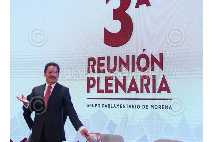 CIUDAD DE MÉXICO, 25AGOSTO2022.- Ignacio Mier Velazco, coordinador del grupo parlamentario Morena; Adán Augusto, secretario de Gobernación; Rosa Icela Rodríguez Velázquez, secretaria de Seguridad y Protección Ciudadana; Ricardo Mejía Berdeja, subsecretario de seguridad; Carlos Alberto Puente, Partido verde y Reginaldo Sandoval Flores, Partido del Trabajo(PT) durante la inauguración de la 3era plenaria de Morena. FOTO: ANDREA MURCIA /CUARTOSCURO.COM