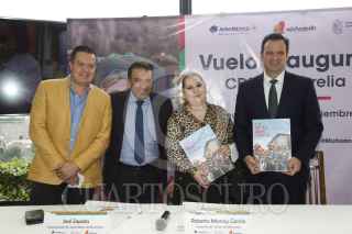 CIUDAD DE MÉXICO, 25AGOSTO2022.- Firma de convenio entre Jorge Zapata, vicepresidente de Ventas Aeroméxico y Roberto Monroy Secretario de Turismo de Michoacán previo a la reapertura de la ruta CDMX-Morelia que dejó de operar por la pandemia de COVID 19 y reanuda operaciones el 19 de septiembre. FOTO: EDGAR NEGRETE/CUARTOSCURO.COM