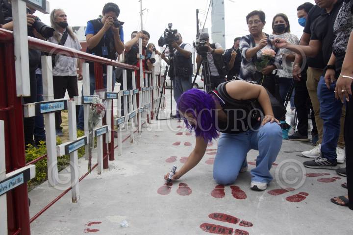 MONTERREY, NUEVO LEÓN, 25AGOSTO2022.- Tras once años del ataque al Casino Royale, donde murieron 52 personas; familiares se reúnen en las afueras del lugar para conmemorar a las víctimas con flores, huellas y cruces con los nombres de cada uno de los fallecidos. FOTO: GABRIELA PÉREZ MONTIEL / CUARTOSCURO.COM