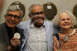 PACHUCA, HIDALGO, 25AGOSTO2022.- Los fotógrafos Vida Yovanovich y Francisco Mata recibieron la medalla al mérito fotográfico en el 23 Encuentro Nacional de Fototecas por su trayectoria y aporte a la fotografía mexicana. FOTO: DENISSE HERNÁNDEZ/CUARTOSCURO.COM