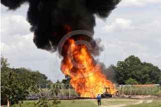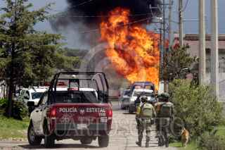 AMOZOC, PUEBLA, 26AGOSTO2022.- Elementos de la Guardia Nacional y Policía estatal resguardan el lugar donde explotó un gasoducto supuestamente por una toma clandestina, en el municipio de Amozoc. FOTO: MIREYA NOVO/CUARTOSCURO.COM