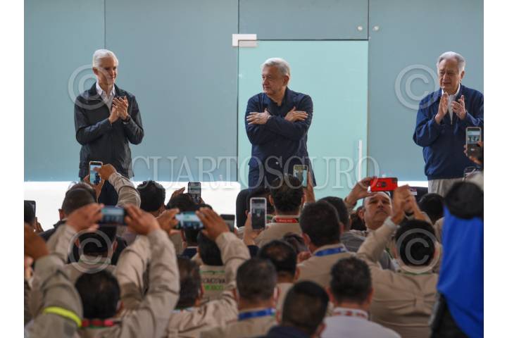 TOLUCA, ESTADO DE MÉXICO, 27AGOSTO2022.- Andrés Manuel López Obrador Presidente de a México realizó un recorrido por las instalaciones de CFE Toluca en donde sostuvo un encuentro con trabajadores de la Comisión Federal de Electricidad en el Estado de México Iluminando y comunicando a México, Internet para Todos, donde realizó la supervisión de las torres de internet, acompañado por Manuel Bartlett Director General de CFE y Alfredo del Mazo Maza, Gobernador del Estado de México. En la entidad mexiquense serán instaladas 91 antenas beneficiando a 599 poblaciones y 285 mil habitantes, en los estados de Guerrero y Michoacán serán instaladas 212 y 133 respectivamente. FOTO: CRISANTA ESPINOSA AGUILAR /CUARTOSCURO.COM