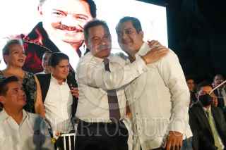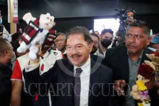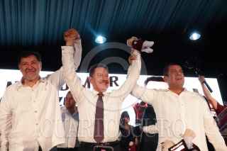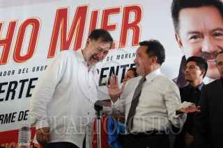 PUEBLA, PUEBLA DE ZARAGOZA, 27AGOSTO2022.- Ignacio Mier, coordinador del grupo parlamentario de Morena, ofreció su cuarto informa de resultados. Durante el acto lo acompañaron Mario Delgado, presidente de Morena; Sergio Gutiérrez Luna, presidente de la mesa directiva de la Cámara de Diputados, Gerardo Noroña, vicecoordinador del Partido del Trabajo; Ricardo Moya, gobernador de Sinaloa, y gobernadores de diferentes estados de la República. FOTO: GRACIELA LÓPEZ /CUARTOSCURO.COM