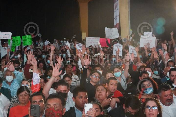 PUEBLA, PUEBLA DE ZARAGOZA, 27AGOSTO2022.- Ignacio Mier, coordinador del grupo parlamentario de Morena, ofreció su cuarto informa de resultados. Durante el acto lo acompañaron Mario Delgado, presidente de Morena; Sergio Gutiérrez Luna, presidente de la mesa directiva de la Cámara de Diputados, Gerardo Noroña, vicecoordinador del Partido del Trabajo; Ricardo Moya, gobernador de Sinaloa, y gobernadores de diferentes estados de la República. FOTO: GRACIELA LÓPEZ /CUARTOSCURO.COM