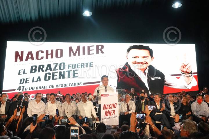PUEBLA, PUEBLA DE ZARAGOZA, 27AGOSTO2022.- Ignacio Mier, coordinador del grupo parlamentario de Morena, ofreció su cuarto informa de resultados. Durante el acto lo acompañaron Mario Delgado, presidente de Morena; Sergio Gutiérrez Luna, presidente de la mesa directiva de la Cámara de Diputados, Gerardo Noroña, vicecoordinador del Partido del Trabajo; Ricardo Moya, gobernador de Sinaloa, y gobernadores de diferentes estados de la República. FOTO: GRACIELA LÓPEZ /CUARTOSCURO.COM