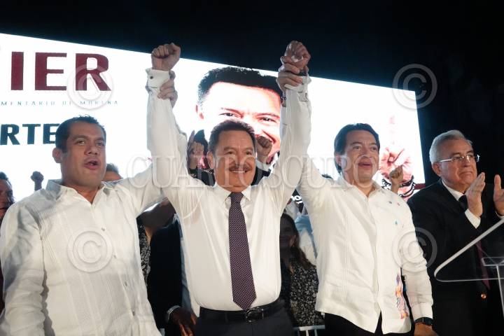 PUEBLA, PUEBLA DE ZARAGOZA, 27AGOSTO2022.- Ignacio Mier, coordinador del grupo parlamentario de Morena, ofreció su cuarto informa de resultados. Durante el acto lo acompañaron Mario Delgado, presidente de Morena; Sergio Gutiérrez Luna, presidente de la mesa directiva de la Cámara de Diputados, Gerardo Noroña, vicecoordinador del Partido del Trabajo; Ricardo Moya, gobernador de Sinaloa, y gobernadores de diferentes estados de la República. FOTO: GRACIELA LÓPEZ /CUARTOSCURO.COM