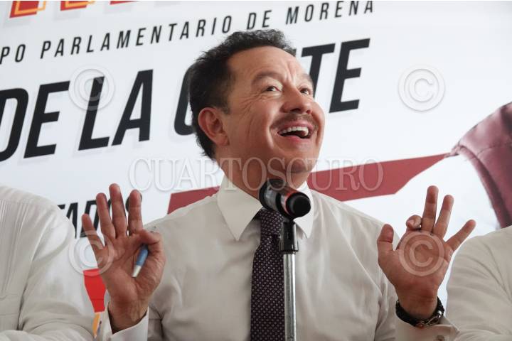 PUEBLA, PUEBLA DE ZARAGOZA, 27AGOSTO2022.- Ignacio Mier, coordinador del grupo parlamentario de Morena, ofreció su cuarto informa de resultados. Durante el acto lo acompañaron Mario Delgado, presidente de Morena; Sergio Gutiérrez Luna, presidente de la mesa directiva de la Cámara de Diputados, Gerardo Noroña, vicecoordinador del Partido del Trabajo; Ricardo Moya, gobernador de Sinaloa, y gobernadores de diferentes estados de la República. FOTO: GRACIELA LÓPEZ /CUARTOSCURO.COM