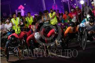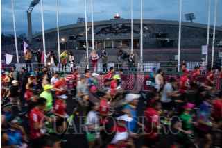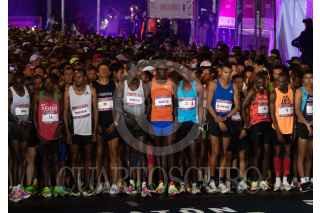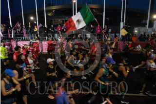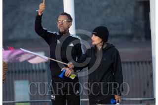 CIUDAD DE MÉXICO, 28AGOSTO2022.- Javier Ariel Hidalgo Ponce, director de INDEPORTE y la Barbie Juárez dieron el banderazo de salida de la primera ronda del maratón de la Ciudad que arranco a las 6:45 de la mañana en estadio Olímpico Universitario con meta en el Zócalo Capitalino. FOTO: ANDREA MURCIA /CUARTOSCURO.COM