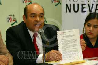 MÉXICO D.F. 31ENERO2007.- El sr. Thomas López miembro de las organizaciones adherentes al PRI, presentó un documento en respuesta a las modificaciones al Código de Ética del partido, presentadas ayer por la senadora Rosario Green. FOTO: ROSA MALDONADO/CUARTOSCURO.COM