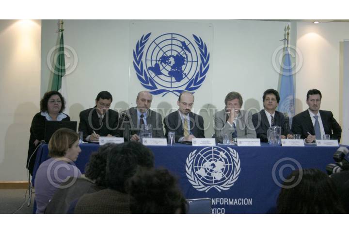 MÉXICO D.F. 31ENERO2007.-El sr. Jorge Máttar director de la SEPAL en México y otros dirigentes de organizaciones internacionales se reunieron en las instalaciones de la ONU para dar a conocer los temas a tratar en el proximo Foro Internacional sobre Políticas Públicas para el desarrollo de México. FOTO: ROSA MALDONADO/CUARTOSCURO.COM