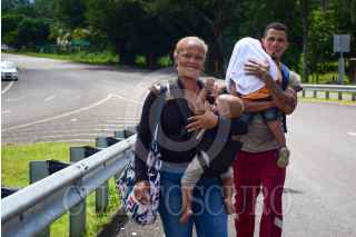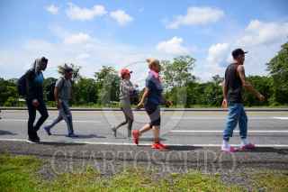 HUIXTLA, CHIAPAS, 29AGOSTO2022.- Una Caravana Migrante camina bajo las altas temperaturas en el municipio de Huixtla. Los caminantes se dirigen al Centro de Atención Integral Al Transito Fronterizo (CAIFT) para solicitar documentos migratorios para llegar a la Frontera Norte, y debido a la falta de alimentos y agua, las personas se encuentra deshidratadas, solicitan ayuda del Gobierno de Andrés Manuel López Obrador para agilizar los documentos. FOTO: DAMIÁN SÁNCHEZ/CUARTOSCURO.COM