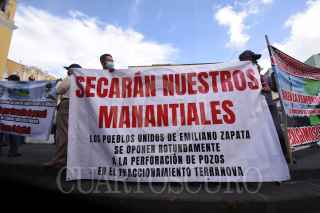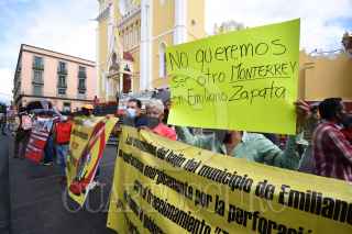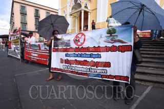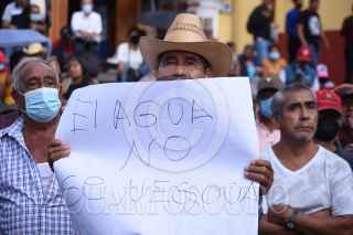 XALAPA, VERACRUZ, 29AGOSTO2022.- Pobladores del municipio Emiliano Zapata se manifestaron en el centro de Xalapa pues afirman que la construcción del fraccionamiento Terranova dejará sin agua a localidades de dicho municipio, en sus pancartas se leía "No queremos ser otro Monterrey". FOTO: YERANIA ROLÓN/CUARTOSCURO.COM