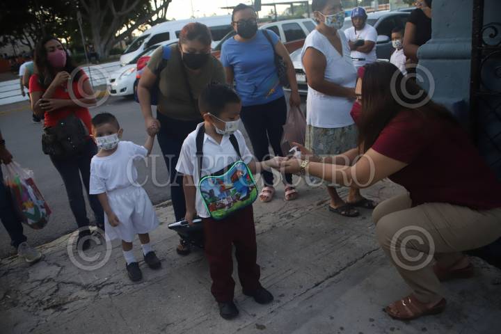 MÉRIDA, YUCATÁN, 29AGOSTO2022.- El ciclo escolar 2022-2023 en Yucatán arrancó el día de hoy con una matrícula de 529,057 alumnos de educación básica y media superior, tanto de escuelas públicas como privadas y concluirá oficialmente el 8 de julio del siguiente año, para un total de 190 días efectivos de clases. Desde temprana hora comenzó a observarse movimiento en los más de 4 mil 180 planteles educativos en el estado, tal es el caso de la escuela Primaria María Antonia Ancona, ubicada en el barrio de Santiago en dónde acudieron los alumnos acompañados de sus padres o familiares, después de concluido el periodo vacacional. FOTO: MARTÍN ZETINA/CUARTOSCURO.COM
