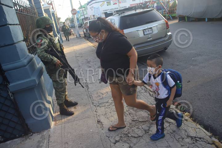 MÉRIDA, YUCATÁN, 29AGOSTO2022.- El ciclo escolar 2022-2023 en Yucatán arrancó el día de hoy con una matrícula de 529,057 alumnos de educación básica y media superior, tanto de escuelas públicas como privadas y concluirá oficialmente el 8 de julio del siguiente año, para un total de 190 días efectivos de clases. Desde temprana hora comenzó a observarse movimiento en los más de 4 mil 180 planteles educativos en el estado, tal es el caso de la escuela Primaria María Antonia Ancona, ubicada en el barrio de Santiago en dónde acudieron los alumnos acompañados de sus padres o familiares, después de concluido el periodo vacacional. FOTO: MARTÍN ZETINA/CUARTOSCURO.COM