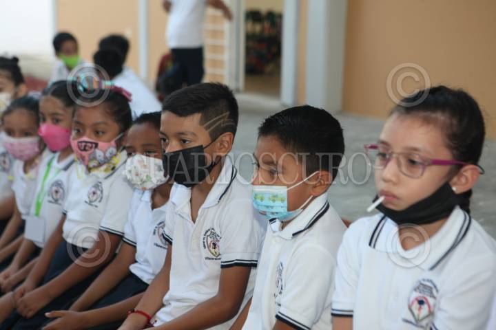 VILLAHERMOSA, TABASCO, 29AGOSTO2022.- Autoridades estatales de Educación anunciaron que en este regreso a clases del nuevo ciclo escolar 22-23, en educación básica arrancaron con una matrícula de 527 mil cuarenta y ocho educando, 22 mil quinientos cuarenta y cuatro profesores en las cinco mil 103 escuelas que tiene Tabasco. Los escolares acudieron al plantel de manera segura, con cubre bocas, se abrazaron en un recuentro y otros buscaron protección en su maestra. FOTO: CARLOS CANABAL OBRADOR/CUARTOSCURO.COM