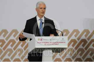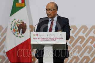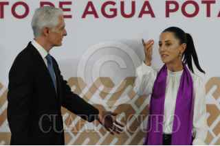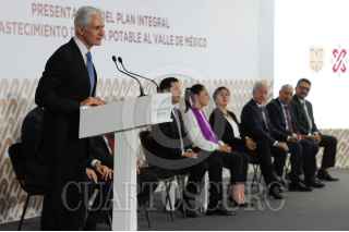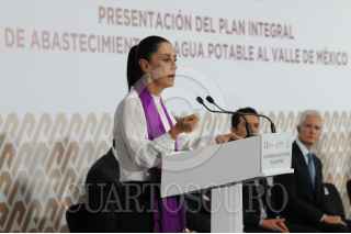 CIUDAD DE MÉXICO, 29AGOSTO2022.- Claudia Sheinbaum, jefa de gobierno de la capital y Alfredo del Mazo, gobernador del Estado de México, encabezaron la presentación del Plan Integral de Abastecimiento de Agua Potable en el Valle de México, el cual consiste en la recuperación y restauración del sistema Cutzamala y otras vías de acceso a este líquido para la población del Valle de México, la cual espera concluirse en 2030. FOTO: DANIEL AUGUSTO /CUARTOSCURO.COM