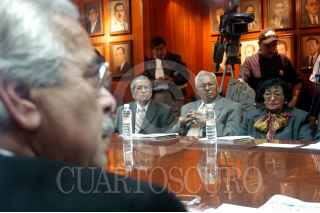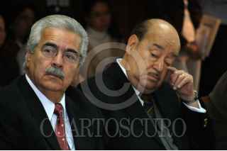 MÉXICO D.F. 04FEBRERO2007.- El senador Celso Humberto Delgado acompañado de Alicia e Higanacio Jara, nietos del General Heriberto Jara, durante la reunión del consejo Político del PRI. esto en la cede del partido FOTO: GUILLERMO PEREA/CUARTOSCURO.COM