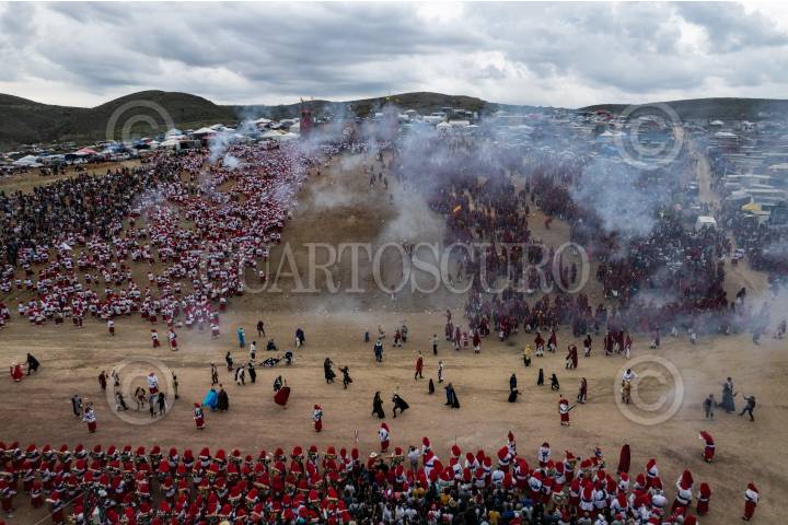 Zacatecas, Zacatecas, 25-29AGOSTO2022.- Después de dos años de suspensión por los estragos de la pandemia por el Covid-19, regresó a las faldas de los cerros y calles de cantera en el centro histórico de Zacatecas, la fiesta religiosa popular en honor a San Juan Bautista, Las Morismas de Bracho. Del 25 al 29 de agosto, miles de personas, entre bebes, niños, jóvenes, madres, abuelos, familias enteras; duermen, comen y beben caracterizados como Moros y Cristianos, mientras esperan su momento para representar su personaje en cada escena en la lucha por la imposición de su religión. La tradicional celebración cumple 198 años, de acuerdo a las estimaciones de la Cofradía de San Juan Bautista, quien organiza, cofrades o participantes sumaron 25 mil personas y una asistencia de público de casi 90 mil personas. Durante estos días se llevan a cabo tres representaciones, acompañadas de detonaciones de pólvora, junto a la capilla de San Juan Bautista en las faldas del cerro de Bracho, espaldas al cerro de La Bufa; Comienzan con el martirio de San Juan Bautista. Después se representan en diferentes escenas de las Cruzadas, el coloquio de Carlomagno y los doce Pares de Francia. Por último, el domingo, miles de actores desfilan por las principales calles de la ciudad para regresar teatro central y allí recrear la batalla de Lepanto, el triunfo de Juan de Austria sobre Alí Bajá. FOTO: ADOLFO VLADIMIR /CUARTOSCURO.COM