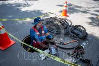 CIUDAD DE MÉXICO, 30AGOSTO2022.- Trabajador da mantenimiento a las líneas de cableado subterráneo.. FOTO: TOMAS ACOSTA / CUARTOSCURO.COM