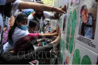CIUDAD DE MÉXICO, 30AGOSTO2022.- Familiares de desaparecidos arribaron a las inmediaciones de la FGR para manifestarse en contra del fiscal ante los pocos avances en la búsqueda de quienes están buscando, además de colocar mosaicos con su rostro, esto en el marco del Día Internacional contra la desaparición. FOTO: DANIEL AUGUSTO /CUARTOSCURO.COM