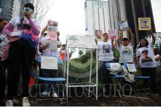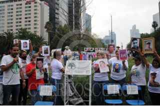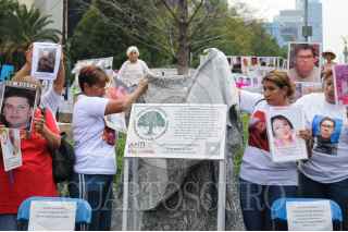 CIUDAD DE MÉXICO, 30AGOSTO2022.- Colectivos de familiares de desaparecidos colocaron una placa a un costado del Ahuehuete plantado por el gobierno local donde autodenominaron la Glorieta de los Desaparecidos, en el evento colocaron tres sillas con los nombres de Claudia Sheinbaum, Alejandro Encinas y Andrés Manuel López, a quienes invitaron y no asistieron. FOTO: DANIEL AUGUSTO /CUARTOSCURO.COM