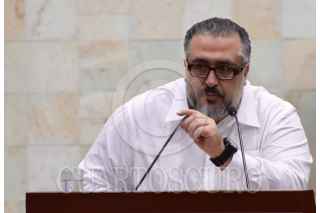 SAN RAYMUNDO JALPAN, OAXACA, 30AGOSTO2022.- Arturo Peimbert Calvo, fiscal general del estado de Oaxaca, compareció ante la Comisión Permanente de Administración y Procuración de Justicia de la 64 legislatura local, donde se le solicitó informe sobre los casos de feminicidio, desaparición de personas, despojo de inmuebles y asignación de vehículos decomisados por la dependencia a su cargo. FOTO: CAROLINA JIMÉNEZ/CUARTOSCURO.COM