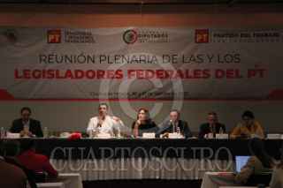 CIUDAD DE MÉXICO, 31AGOSTO2022.- Los senadores Gonzalo Yáñez, Geovanna Bañuelos de la Torre y Benjamín Robles durante la Reunión Plenaria del Partido del Trabajo en el Hotel Sevilla Palace. FOTO: GRACIELA LÓPEZ / CUARTOSCURO.COM