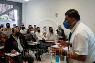 CIUDAD DE MÉXICO, 31AGOSTO2021.- Decenas de conductores entre los que destacan dos mujeres acudieron a los trabajos de capacitación de las unidades que impartirán servicio en el trolebús elevado sobre Calzada Ermita Iztapalapa. El nuevo sistema de transporte comenzará a operar a partir del 11 de septiembre del presente año, como lo había anunciado la jefa de Gobierno Claudia Sheinbaum. La capacitación abarca la parte teórica y práctica, en donde se repasan los reglamentos de tránsito, prioridades en la circulación y el funcionamiento del vehículo y son impartidos en las oficinas del Sistema de Servicios de Transporte Eléctrico. FOTO: GALO CAÑAS/CUARTOSCURO.COM