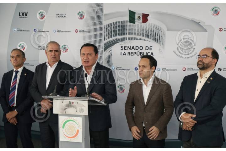 CIUDAD DE MÉXICO, 31AGOSTO2022. - Los coordinadores Miguel Ángel Mancera PRD, Miguel Osorio Chong PRI, Julem Rementeria PAN, Emilio Alvarez Icaza independiente, Clemente Castañeda Movimiento Ciudadano ofrecieron conferencia de prensa para mostrar su desacuerdo con la decisión de Morena sobre su candidato para la Mesa directiva. FOTO: ANDREA MURCIA /CUARTOSCURO.COM