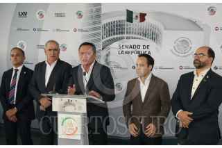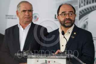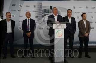 CIUDAD DE MÉXICO, 31AGOSTO2022. - Los coordinadores Miguel Ángel Mancera PRD, Miguel Osorio Chong PRI, Julem Rementeria PAN, Emilio Alvarez Icaza independiente, Clemente Castañeda Movimiento Ciudadano ofrecieron conferencia de prensa para mostrar su desacuerdo con la decisión de Morena sobre su candidato para la Mesa directiva. FOTO: ANDREA MURCIA /CUARTOSCURO.COM