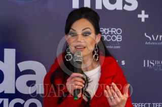 CIUDAD DE MÉXICO, 31AGOSTO2021.- En conferencia de prensa se presentó el reality show "S.O.S. Belleza a tu medida México" del conductor Alex Mont, en dicho programa se le dará un cambio de apariencia a los participantes para que puedan sentirse mejor con su aspecto. La modelo Carmen Campuzano fue invitada como madrina para la tradicional "patadita". FOTO: TOMAS ACOSTA /CUARTOSCURO.COM