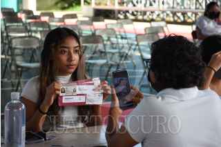 CAMPECHE, CAMPECHE, 31AGOSTO2022.- Beneficiarios del Programa de Bienestar Jóvenes Construyendo el Futuro recibieron su tarjeta con la que iniciaran su cobro como parte del programa de apoyo mensual de $5,258 pesos FOTO: MICHAEL BALAM/CUARTOSCURO.COM.