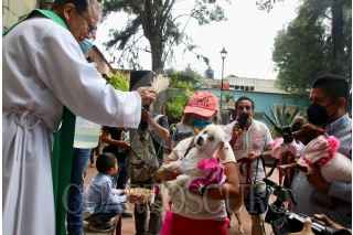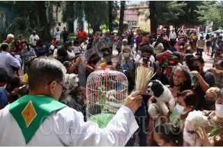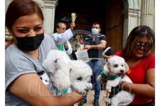 OAXACA, OAXACA 31AGOSTO2022.- Este 31 de agosto se celebra el día de San Ramón Nonato, a quien se considera protector de los animales, por este motivo decenas de católicos acudieron al templo de Nuestra Señora de la Merced en la capital de Oaxaca para bendecir a sus mascotas. Esta tradición es única en el estado de Oaxaca. FOTO: CAROLINA JIMÉNEZ/CUARTOSCURO.COM