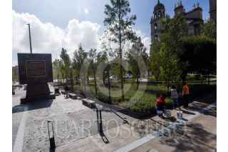 TOLUCA, ESTADO DE MÉXICO, 01SEPTIEMBRE2022.- La remodelación de la Plaza de los Mártires se encuentra casi lista, trabajadores se encuentran dando los últimos detalles, después de que el 1 de diciembre del 2021 fuera realizado el anuncio por el gobernador mexiquense, recuperando de jardín y sembrando 100 árboles, dando más espacios verdes a los mexiquenses. FOTO: CRISANTA ESPINOSA AGUILAR /CUARTOSCURO.COM